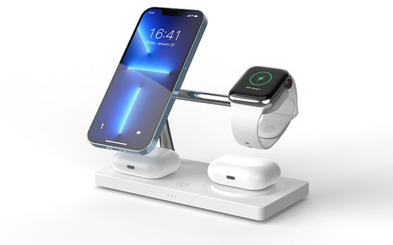 The All In One Wireless Charger comes in a sleek and compact box that includes: